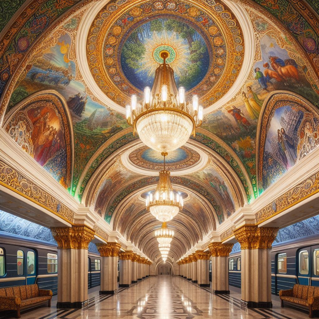 Chaque station est un hommage à l’histoire et à la culture ouzbèke, ornée de mosaïques, lustres majestueux et motifs inspirés de la Route de la Soie.